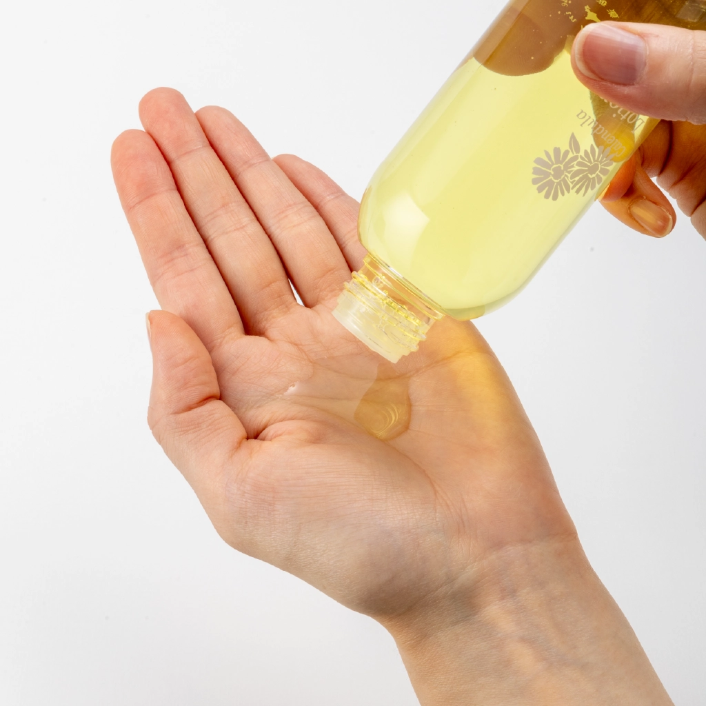 その後、オイルやクリームを重ねて化粧水のうるおいを守ってください。デコルテやボディの保湿ローションとしてもお使いいただけます。