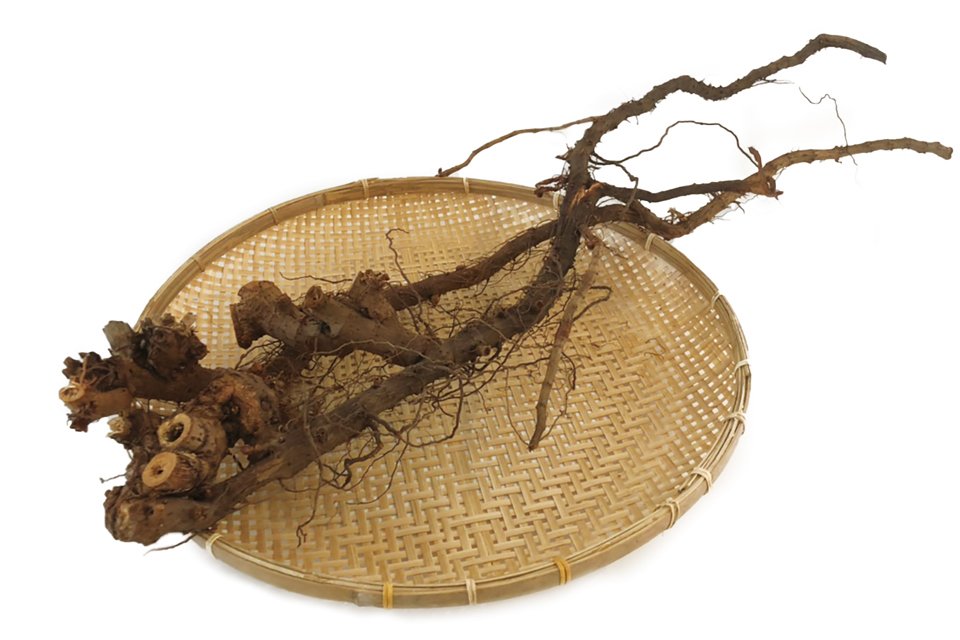 オオイタドリの根は非常に太く、しっかりと張り巡らされているため、掘り起こすのも一苦労。採取後に洗って乾燥させ、木のように硬い根を小さくカットし、ノミと金槌で細かいチップ状に粉砕する作業も並大抵ではありません。