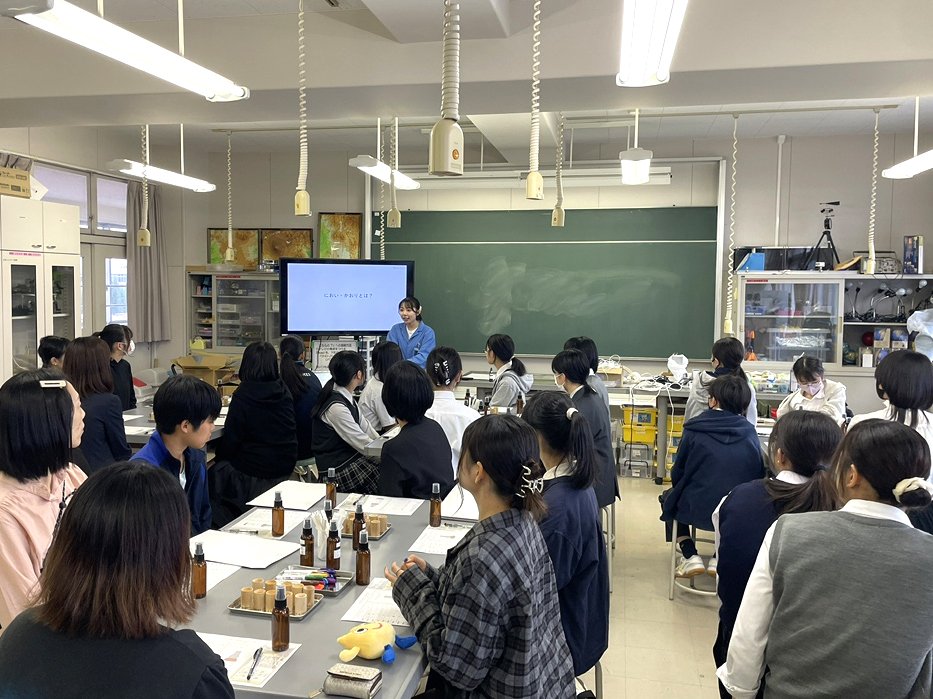 当社は、理工系の知識が活かせる魅力的な仕事の一つとして「調香師」の仕事を体験してもらおうと、体験プログラムの一環として「香りのワークショップ」を提供しました。