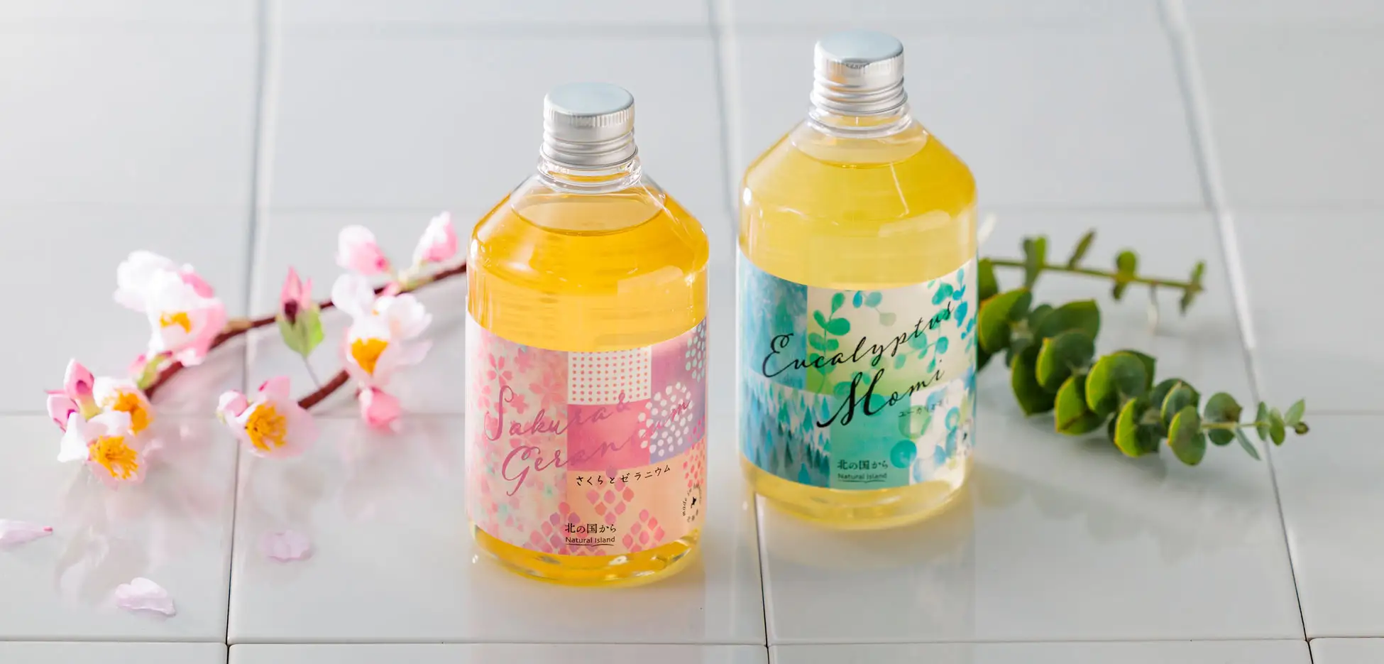 「ユーカリとモミ」は、ユーカリ精油に北海道釧路産モミ精油(トドマツ精油)とパイン精油をブレンドした、透明感のあるすっきりとした森林の香りが特徴です。一方、「さくらとゼラニウム」は、咲いてもすぐに散ってしまう八重桜の花びらエキスを使用し、ふんわりと包み込むような桜の香りにゼラニウムやハーブをブレンドした上品で優しい香りを楽しめます。季節に合った贅沢なバスタイムをお楽しみください。