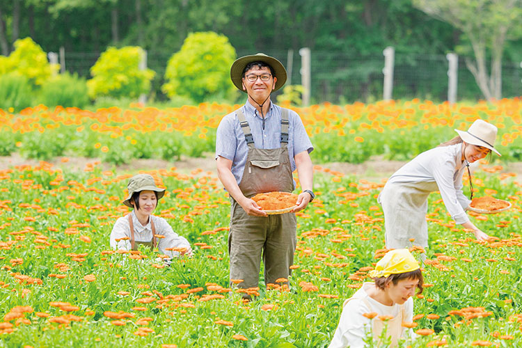 北海道の自社農園や協力生産者のもとで、土や水、