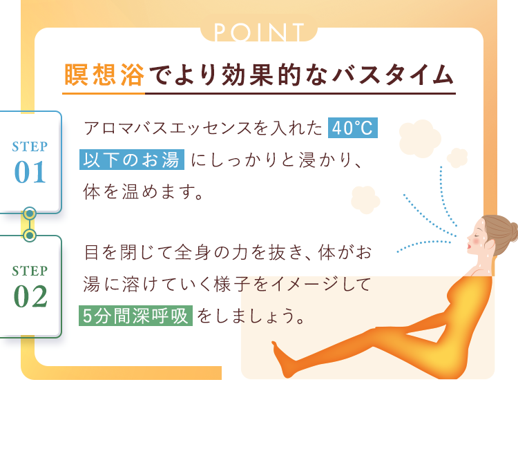 熱いお湯での長風呂は疲労感が増し、肌も乾燥しやすくなります。