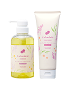 ダメージケアにすぐれたカレンデュラオイル、エキス、発酵エキスをトリプル配合。しっとりまとまるツヤのある髪へ。