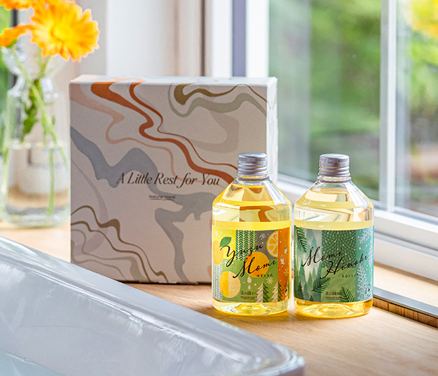 セット内容:ゆずともみ 300ml、もみとヒノキ 300ml、ナチュラルアイランドショッパー