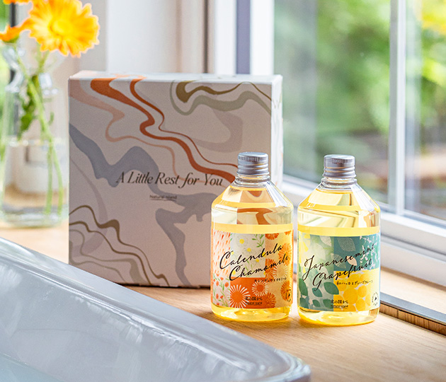 セット内容:カレンデュラとカモミール 300ml、和ハッカとグレープフルーツ 300ml、ナチュラルアイランドショッパー
