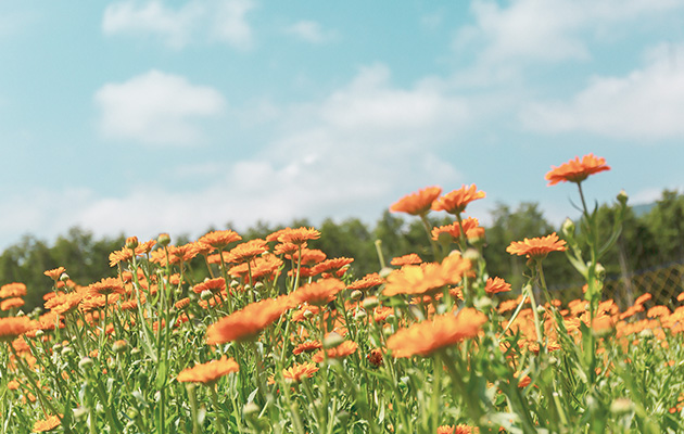 肌をうるおすカレンデュラオイルに、花のエキスをたっぷりブレンド。