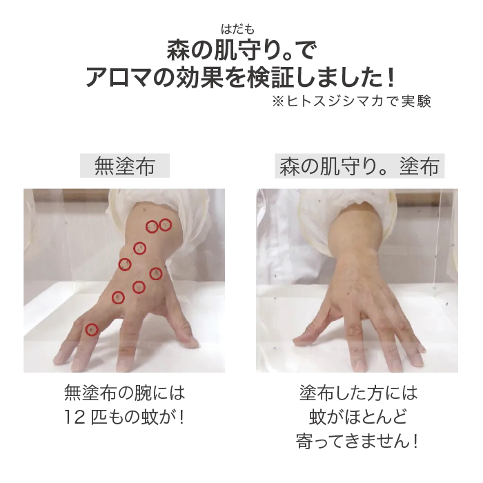 市販の虫除けスプレーは赤ちゃんの肌にも優しいと銘打っていてもベタつき、顔にかかると刺すような刺激痛、ノドに張り付くような不快感があり我慢しながら付けていましたが、御社のこちらの品はそういった不快感が一切なく、それでいて虫除けも完璧、香りも爽やかでふんだんにスプレーしています。
