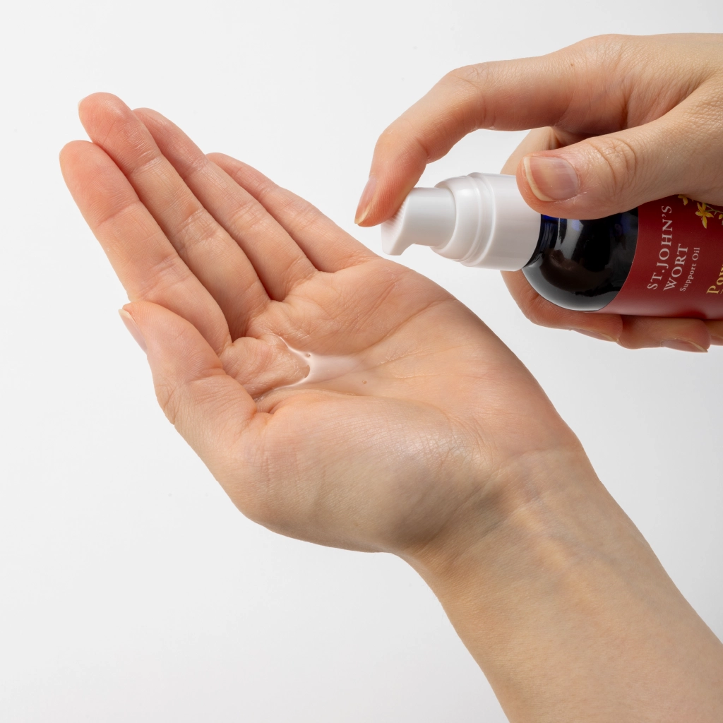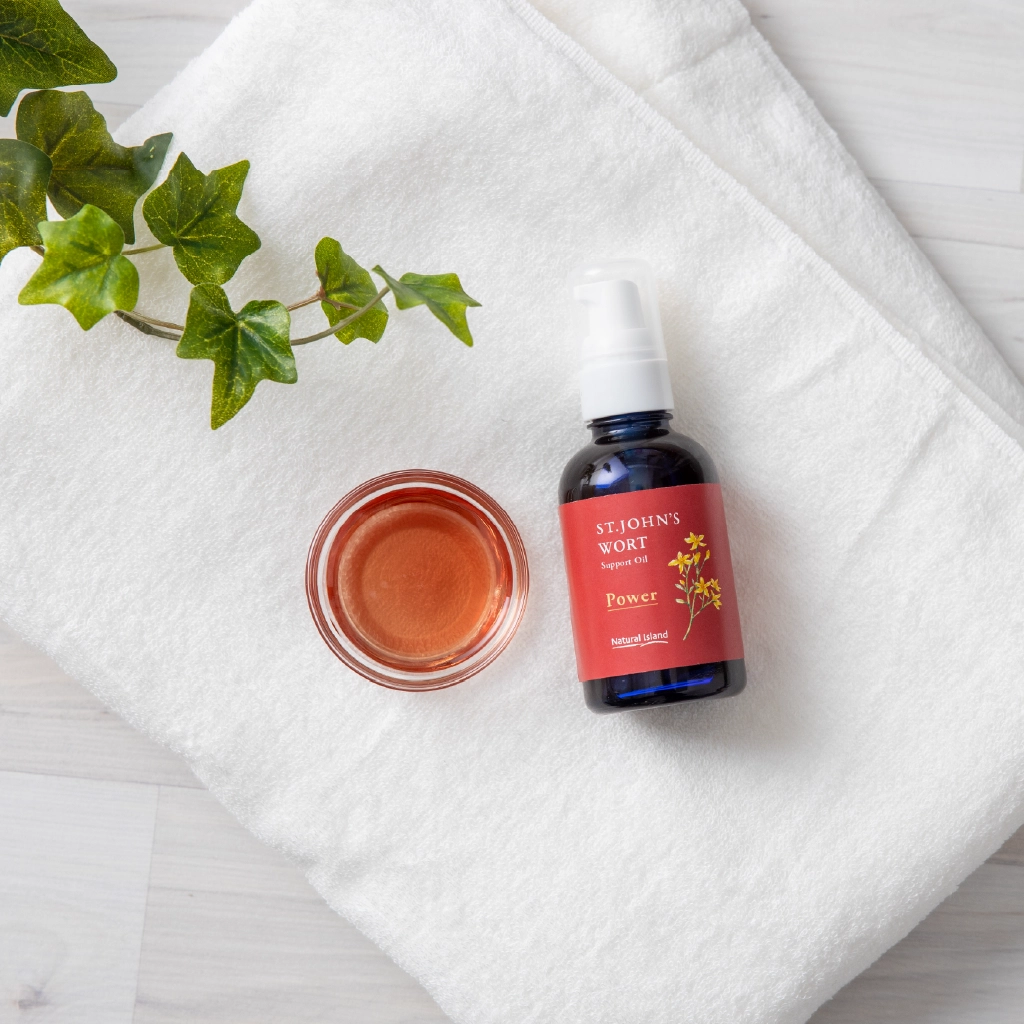 セントジョーンズワートのオイルに血行促進効果のあるショウガやレモングラスなどのエッセンシャルオイルを配合。すっきりとした香りに仕上げています。仕事やスポーツで疲れた体や冷えを芯から解きほぐすオイルです。