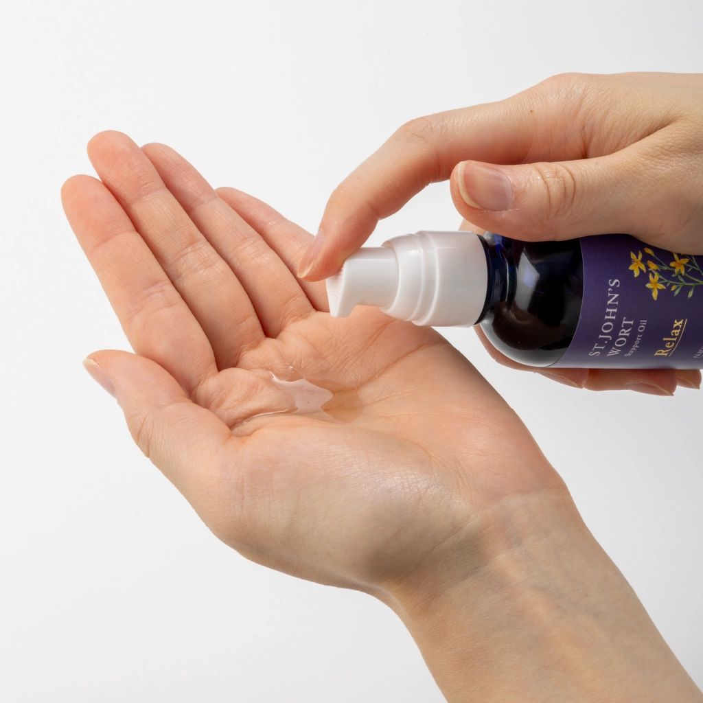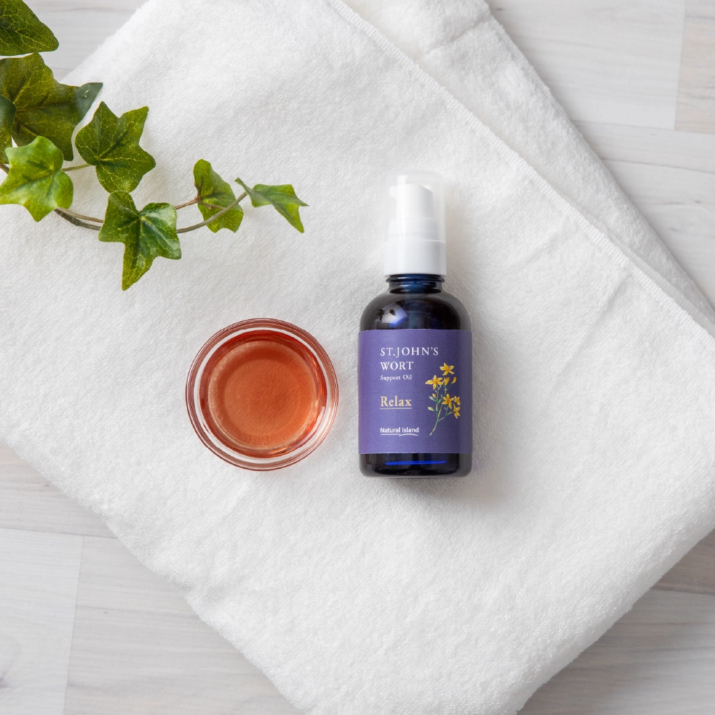 セントジョーンズワートのオイルにラベンダーとハッカのエッセンシャルオイルを配合。やすらぎの香りに仕上げています。睡眠前や首、肩の緊張をほぐすのにおすすめのオイルです。