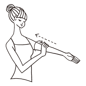 - A手首の内側を掴んで、腕の内側を脇の下までなで上げます。