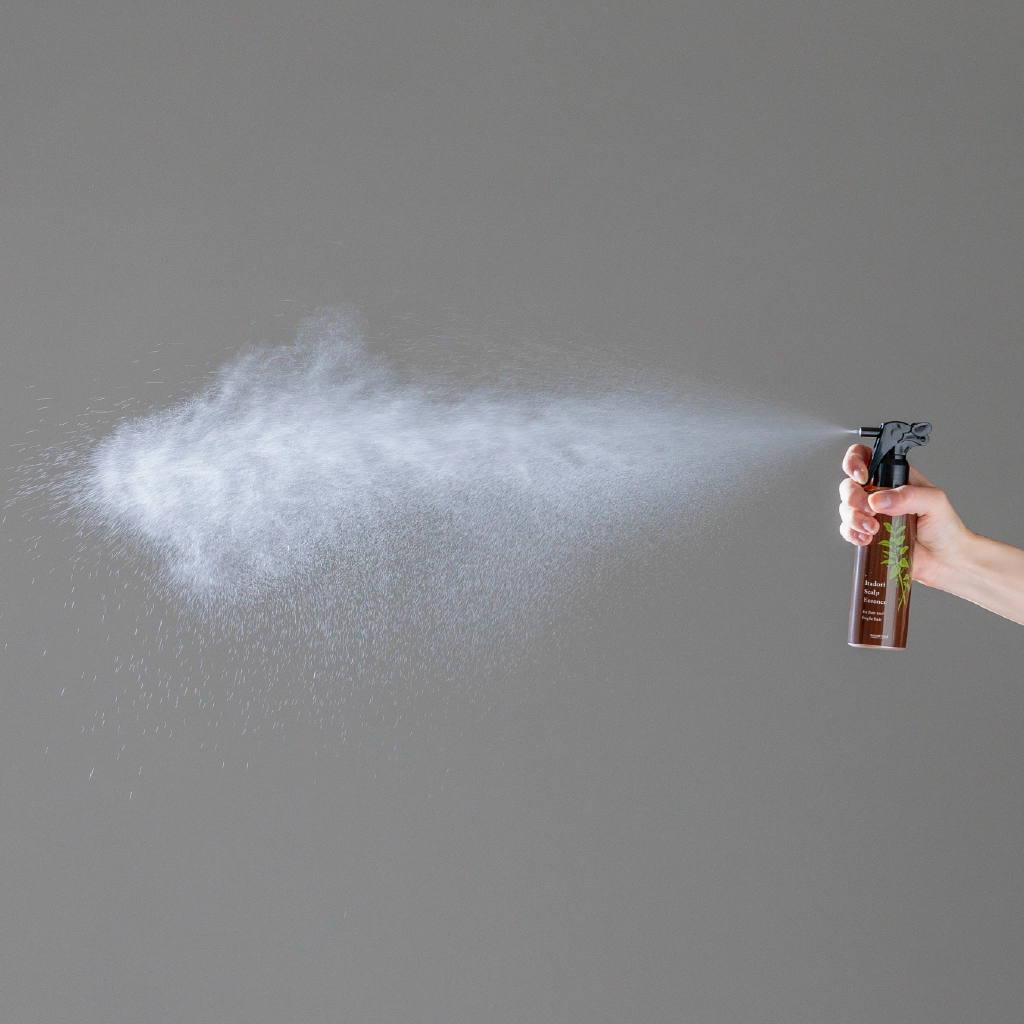 シャンプー後にタオルドライしたら、髪をかき分けながらスプレー。指の腹を使って頭皮全体に行き渡るように なじませてから、ドライヤーで乾かして。乾いた頭皮にも◎