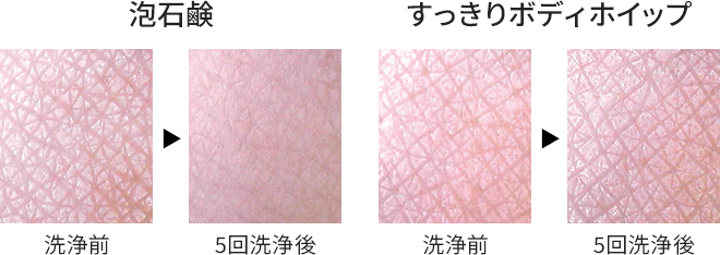 和ハッカのすっきりボディホイップは5回洗った後でも整ったキメが確認できます。