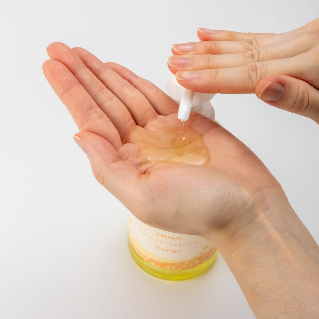 髪や頭皮を充分に湿らせた後、適量を手にとり、マッサージするように泡立てます。その後、充分に洗い流してください。