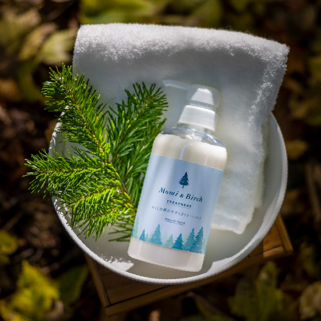 釧路産のモミを中心に、青森のヒバや奈良吉野のヒノキなど森林の香りをブレンド。まるで森林浴をしているような香りは、心がほぐれていくよう。森の力を一日の終わりのバスタイムで感じて、心と体がやすらぐ。そんなリラックスの時間を感じていただける、ヘアケアシリーズです。