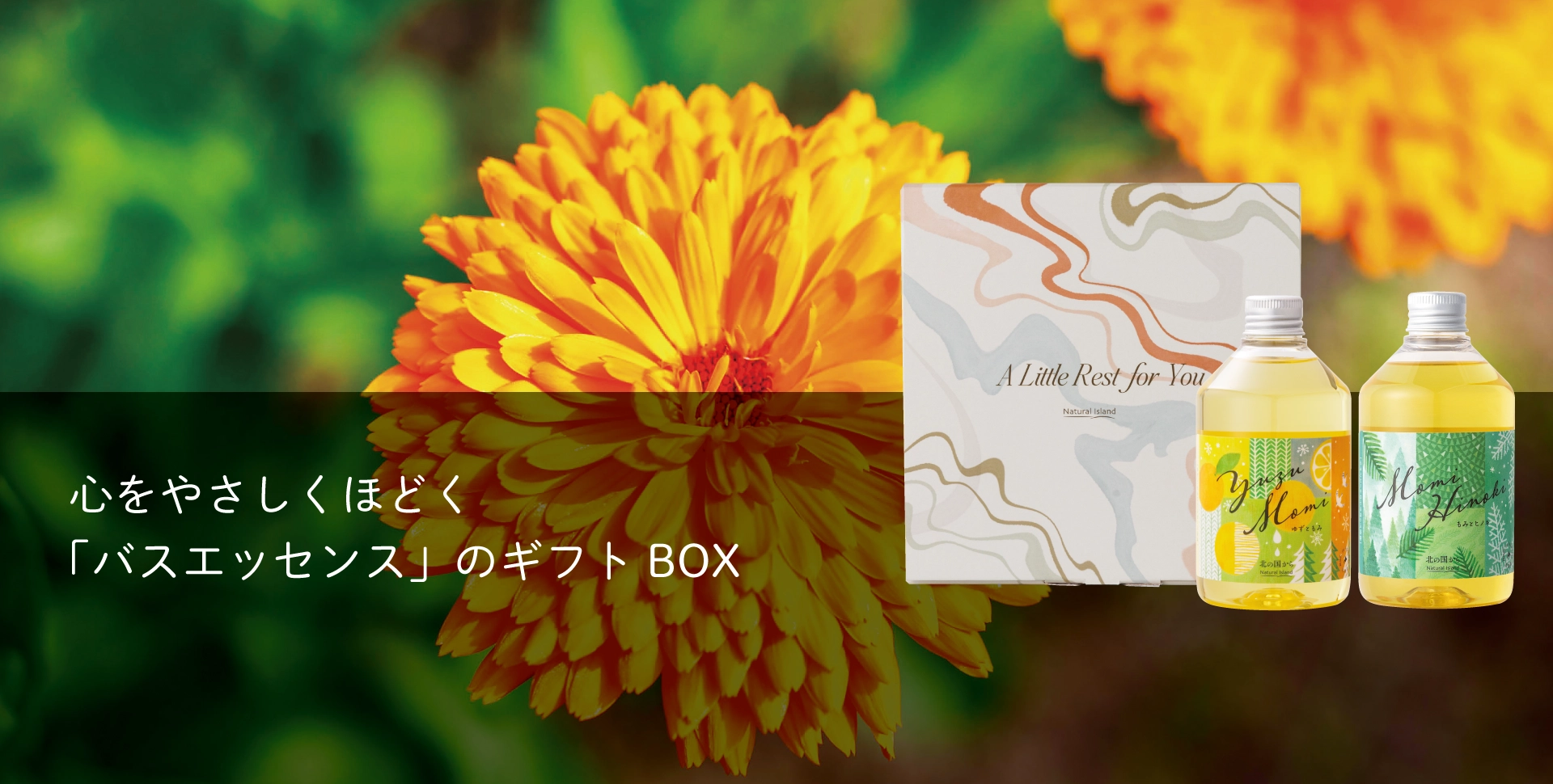 いつも頑張っている自分に、そして大切なあの人に。心をほどくやさしいバスタイムを贈りませんか?特別なギフトBOXに詰め込んだアロマバスエッセンス2本セットです。