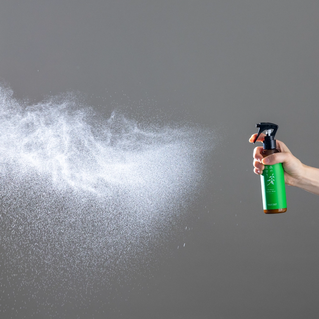 まずはしっかり肌を保湿してから日焼け止めをムラなく塗っていただき、「森の肌守り。」をボディに吹きかけてください。